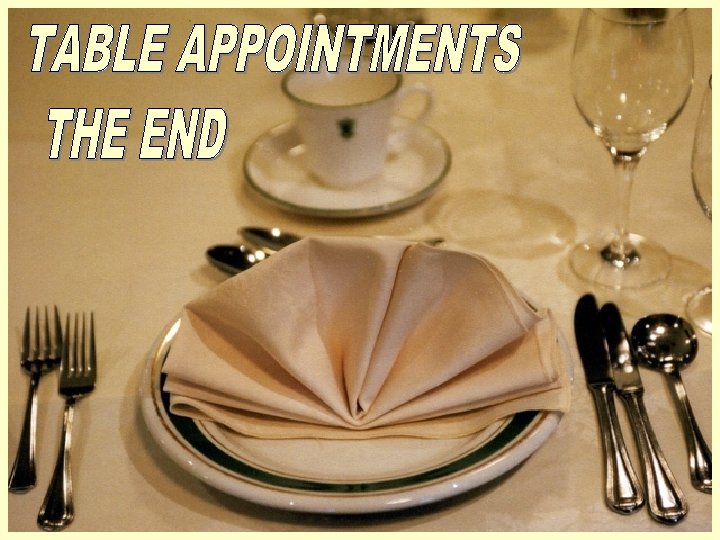 Tableware or table appointments include the dinnerware (including both the dishware and serving pieces), beverageware, cutlery and flatware, linens, and centerpieces used in setting a table and eating a meal. The appointments for one individual diner are referred to as the “place setting”. The nature, variety, design and number of objects varies from culture to culture, and may vary from meal to meal. When selecting table appointments, you set the tone of the meal… either “formal” or “casual”.