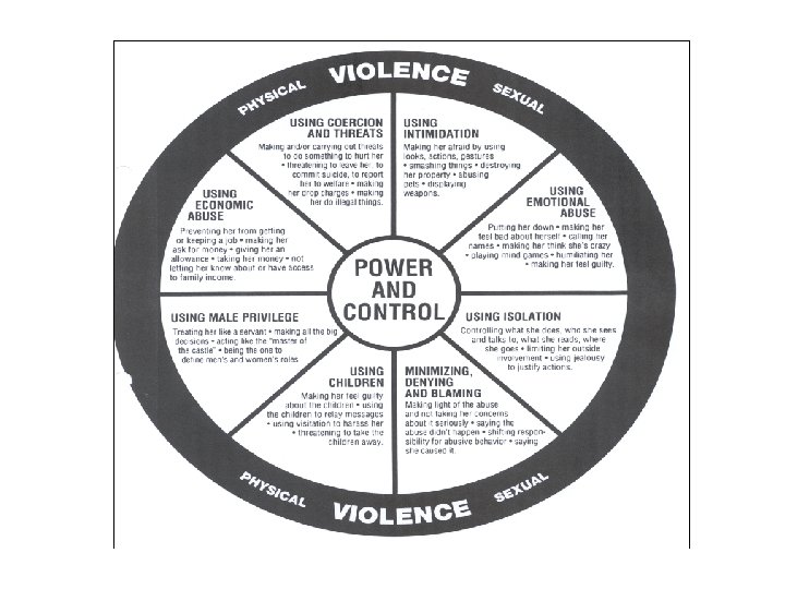 Routine Enquiry Used by health and social care professionals Effective when: • Training for practitioners of at least 2 days • Incorporated into existing work • Good multi-agency links • Use of Duluth wheels • Linked to safety planning Led to: • Increased awareness & disclosure • Increased empowerment of clients and staff