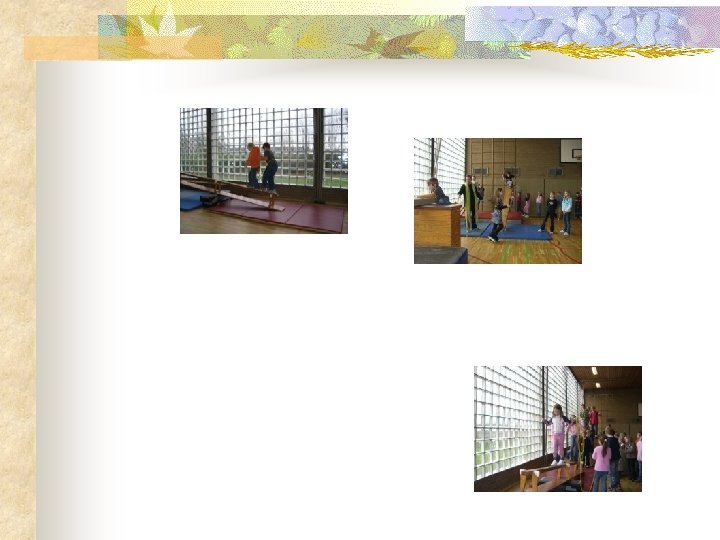 Ergebnisse der Projektarbeit n Die Gruppe von Ralf Zischka hat Bewegungslandschaften entworfen und in der Turnhalle aufgebaut.