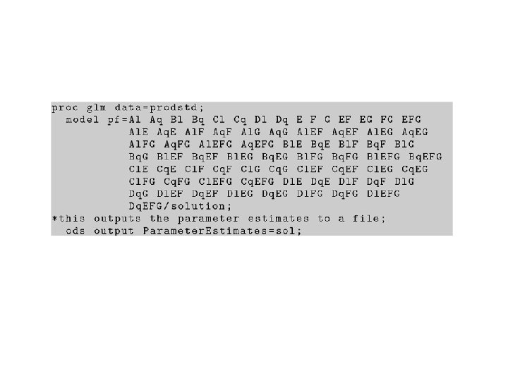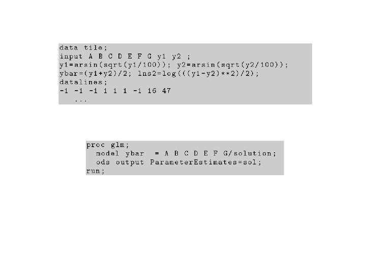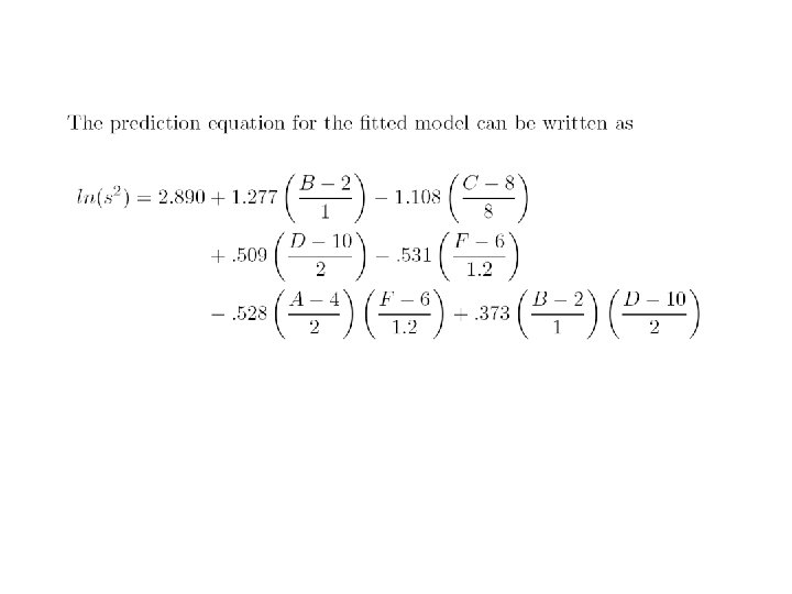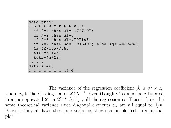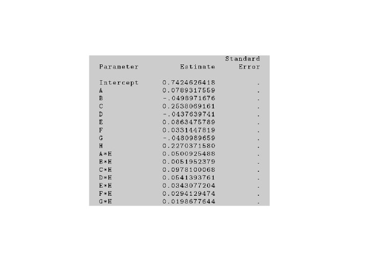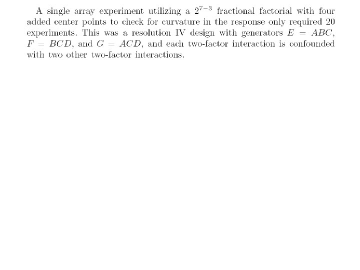 Data written in a single array format Run A B C D E -1 -1 1 1 F G H y 1 -1 2 1 3 -1 4 1 5 -1 -1 1 6 1 -1 7 -1 1 1 -1 -1 0. 433 8 1 1 1 9 -1 -1 -1 1 0. 489 10 1 1 0. 422 11 -1 1 1 0. 201 12 1 1 -1 -1 -1 1 0. 284 13 -1 -1 1 1 0. 833 14 1 -1 -1 1 1. 571 15 -1 1 1 -1 -1 1 0. 927 16 1 1 1. 571 -1 -1 1 1 -1 0. 171 1 -1 0. 120 1 -1 -1 0. 060 1 -1 -1 1 1 -1 0. 212 1 -1 -1 -1 0. 748 -1 -1 -1 0. 161 1 1 -1 0. 263 1