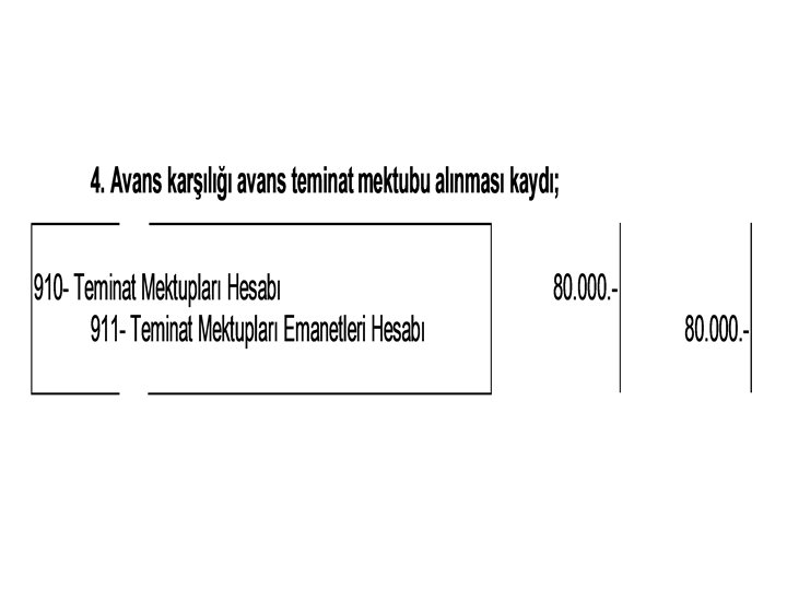 Kamu idaresince, yol yapımı için ihaleye çıkılmıştır. -İhaleyi 800. 000. - TL fiyat teklifi veren müteahhit kazanmıştır. -Müteahhitten % 6 oranında kesin teminat mektubu alınmış ve sözleşme imzalanmıştır. -Sözleşmeye göre yıllara sari olmayan bu işle ilgili müteahhide teminat mektubu karşılığında %10 oranında avans verilmiştir.
