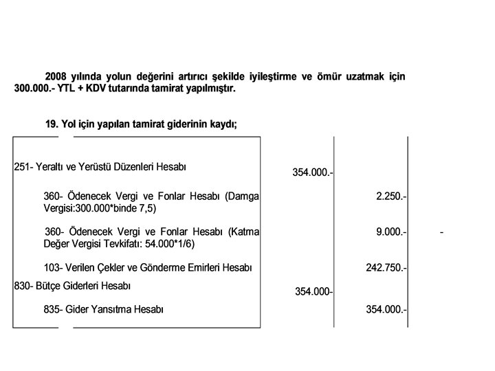 50. 000 TL’si keşif artışı olmak üzere daha sonra 350. 000. - TL tutarında ikinci hakediş bedeli ödenerek yol yapımı geçici kabul aşamasına kadar getirilmiştir.