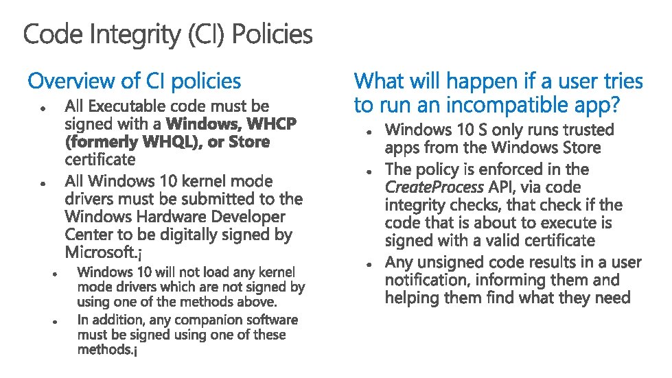 Introducing Windows 10 S UEFI Firmware https: //www. microsoft. com/en-us/windows-10 -s https: //docs. microsoft. com/en-us/windowshardware/manufacture/desktop/uefi-firmware Windows 10 S FAQ https: //support. microsoft. com/en-us/help/4020089/windows 10 -s-faq Getting Started with Universal Windows drivers Windows 10 S Driver Requirements https: //docs. microsoft. com/en-us/windowshardware/drivers/develop/getting-started-with-universaldrivers https: //docs. microsoft. com/en-us/windowshardware/drivers/install/Windows 10 SDriver. Requirements Test your Windows app for Windows 10 S https: //docs. microsoft. com/enus/windows/uwp/porting/desktop-to-uwp-test-windows-s Universal Driver Scenarios https: //docs. microsoft. com/en-us/windowshardware/drivers/develop/universal-driver-scenarios