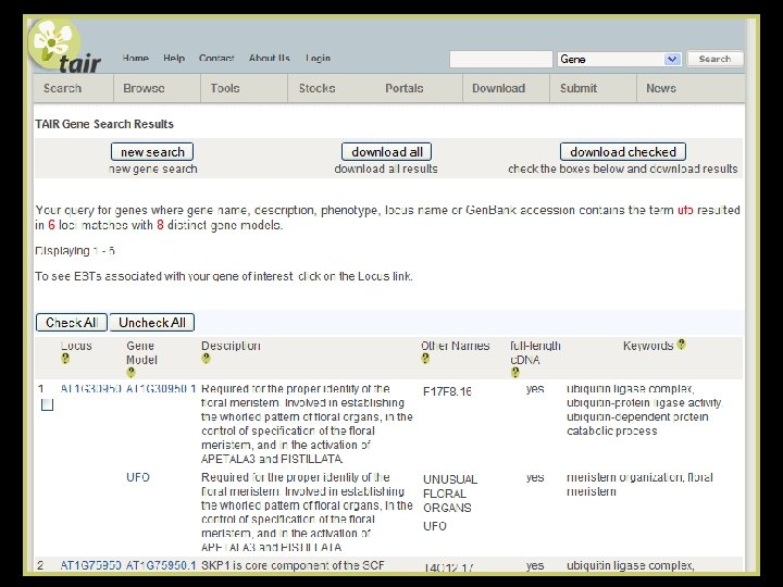 Introduction to TAIR p TAIR website n n Searching Popular tools How to order stocks How to find help
