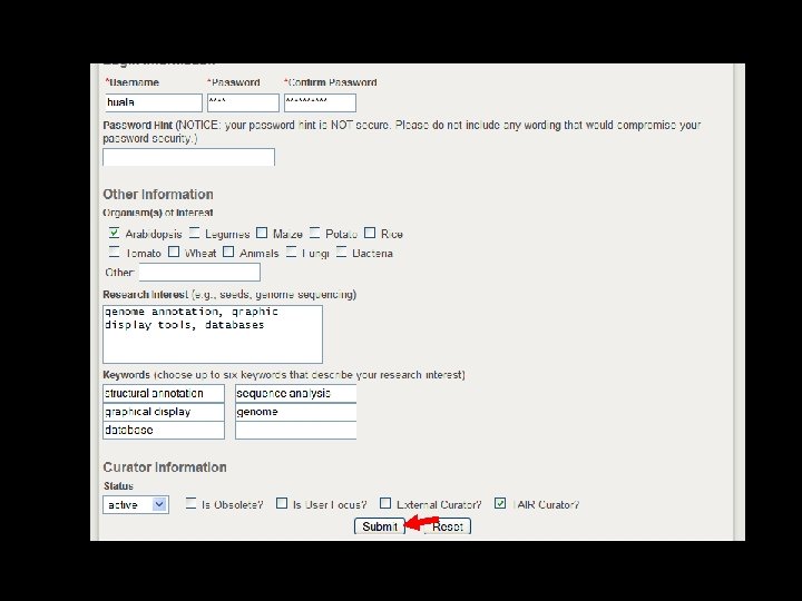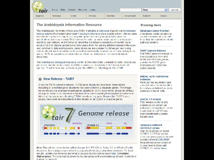 What is TAIR*? p p NSF-funded project begun in 1999 Web resource for Arabidopsis data and stocks Literature-based manual annotation of gene function Genome annotation (gene structure, computational gene function) URL *
