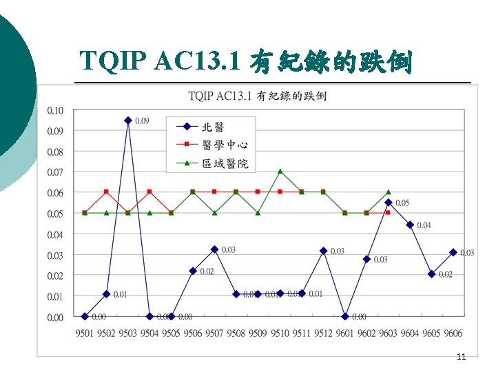 數據分析 ¡ 台灣醫療品質指標計畫 (Taiwan Qiulity Indicator Project, TQIP) ¡ 台灣病人安全通報系統 (Taiwan Patient Reporting System, TPR) 9