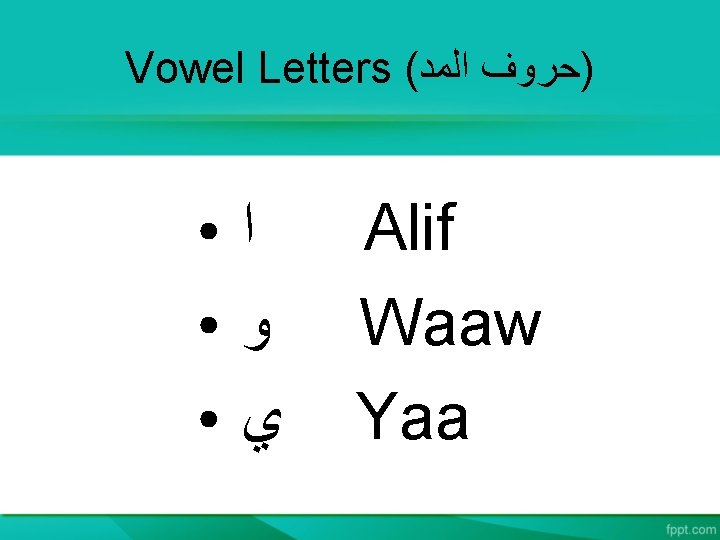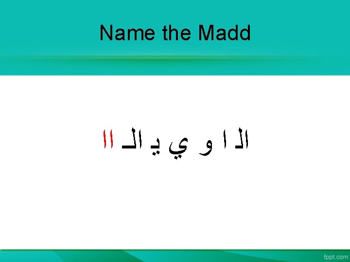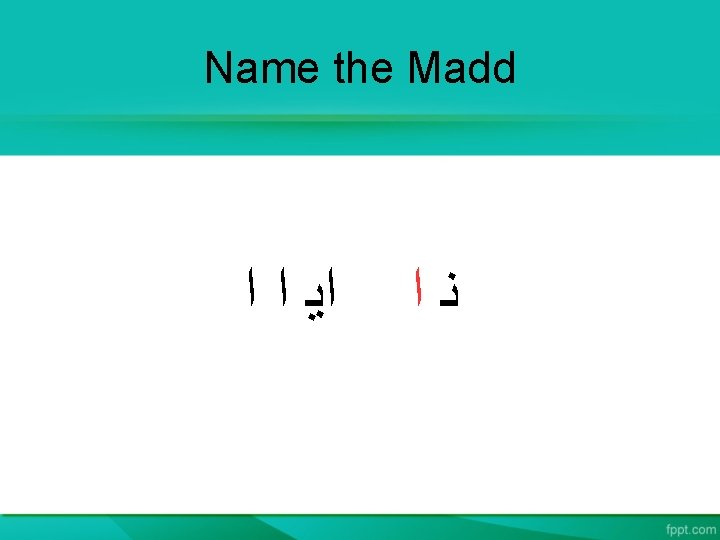 1. Madd ut Tabee ( ﺍﻟﻄﺒﻴﻌﻲ )ﺍﻟﻤﺪ - Normal Extension • It happens when vowel is not followed by Hamzah/Sukoon ﺍﺍﻳ ـ ﺍ • Vowel is held for two counts, which can be measured by saying "one, two" at your own pace