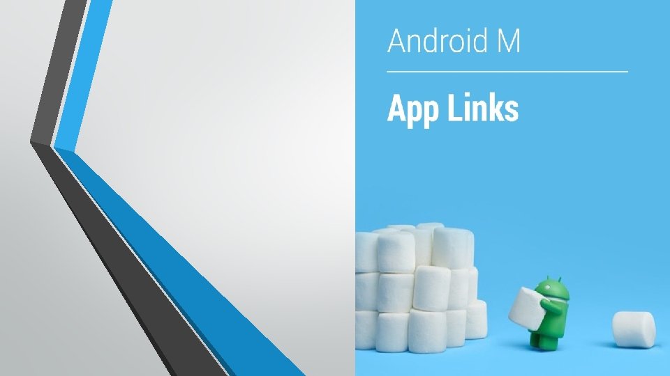 What’s new ? ? Platform APIs • Permission model • Fingerprinting API • Design • Notifications • Doze / App Standby • Audio manager mode • Apps auto backup • 4 k display • Assist API • App linking • Adoptable storage • Camera Updates • Android studio • Design support library • Data binding lib