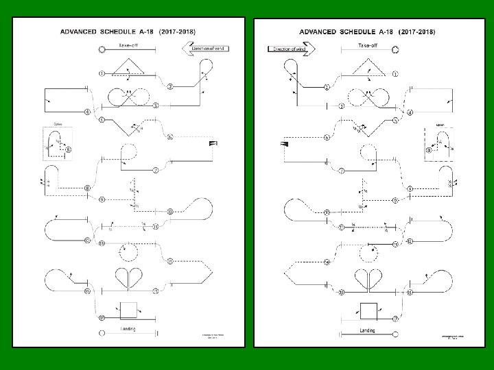 A-18. 17 方筋斗加 1/2滚,1/2滚 Square Loop with, ½ roll 所有R角半径相等 All radii are equal 半滚位于直线段的中间 ½ roll centered on middle of the line. 进入和改出必须在相同高度 Entry and exit must be at the same altitude A-18. 17. 02