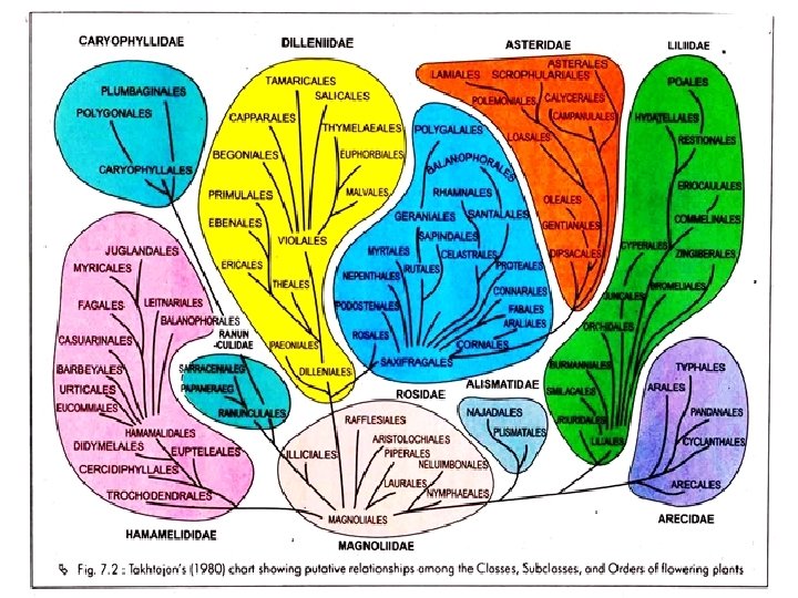Takhtajan’s system is based on 67 phyletic principles. Some of the important criteria used by him to evaluate the relative degree of advancement of flowering plants are as follows: 1. Woody plants are primitive than herbaceous plants. 2. Deciduous woody plants are considered evolved from evergreen plants. 3. Xylem fibers evolved from tracheids to libriform fibres, through fibre tracheids. 4. Trilacunar or pentalacunar nodes are primitive to unilacunar nodes. 5. Alternate leaf arrangement is primitive while parallel venation is most advanced. 6. Stomata with subsidiary cells are primitive than those lacking subsidiary cells. .