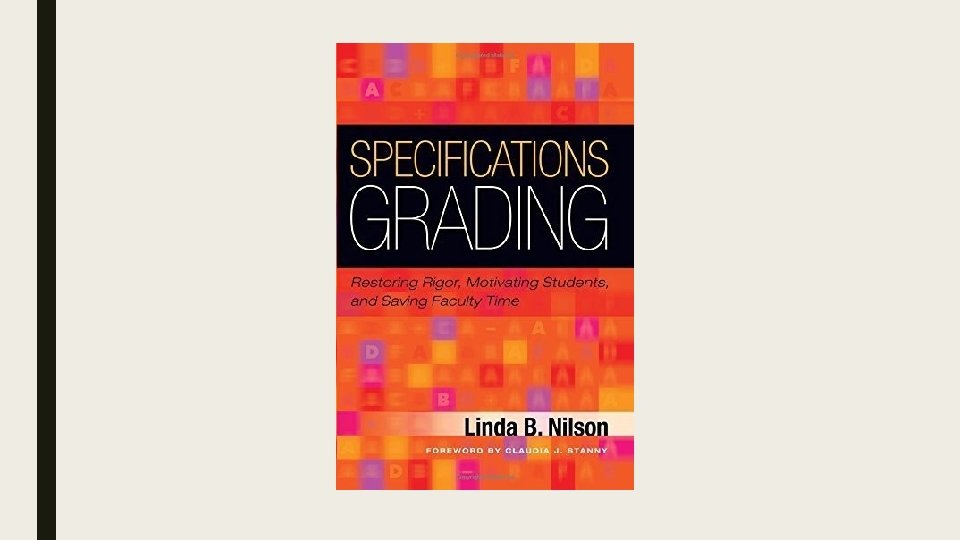 What is Specifications Grading? ■ Alternative grading approach in which students’ work is graded on whether or not they meet “specifications” ■ Specifications – Specified criteria that, if all areas satisfied, work is considered “satisfactory” or a “pass. ”