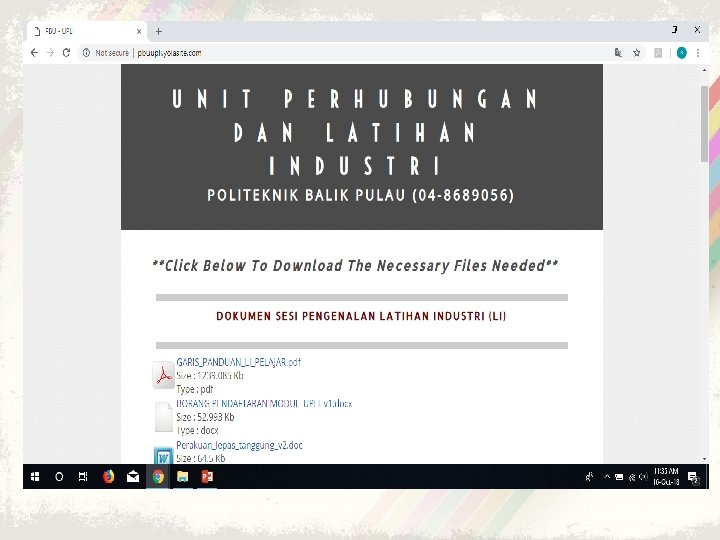 2. Carta Pengaliran LI Dapat tempat LI Final Exam No KB atau KS atau Gagal Brhenti? Tidak layak menjalani LI. Yes Terima Surat Arahan Lapor Diri dari UPLI Lapor Diri di firma 10 DIS 2018, 8. 00 pagi : 1) Tunjuk Surat Pengenalan Diri Pelajar. 2) Tunjuk Surat Jawapan Industri (copy ). 3) Minta HR tandatangani Kad Pengesahan Lapor Diri Hantar ke UPLI : (dalam masa 2 minggu). 1) Kad Pengesahan Lapor Diri 2) Peta ringkas ke firma.