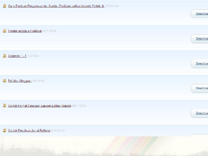 Perkara yang menjadi kesalahan: • Peraturan politeknik masih lagi berkuatkuasa terhadap pelajar ketika menjalani latihan. • Pakaian yang sesuai, bersih dan kemas. • Berambut panjang dan tidak menggambarkan anda seorang pelajar politeknik. • Menjatuhkan imej dan nama baik Politeknik. • Menulis / mengedar maklumat palsu mengenai politeknik atau syarikat.