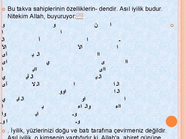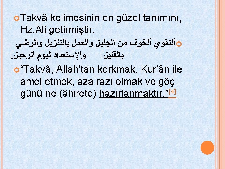 § Kur`an -ı Kerim`de şöyle buyruluyor: § ﺍﻟ ﻯ § Onları takva sözü üzerinde durdurdu. § Takva sözü , Lailahe-İllallah. Allahtan başka ilah yoktur; sözüdür.