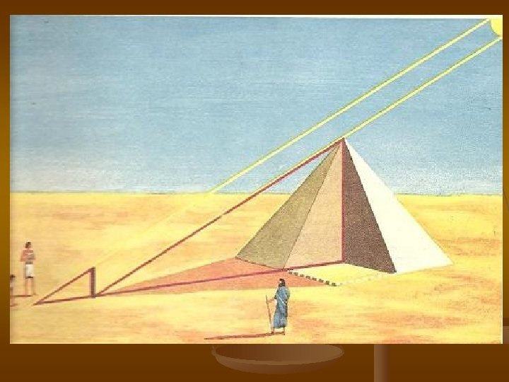 Nesto o piramidi koju je Tales pobedio n na grckom piramida je “ kolacic od meda” piramida koju je Tales izmerio nalazi se u GIZI blizu Kaira piramida jedna od “ 7 svetskih cuda”