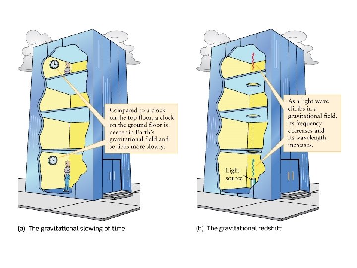 gravitational frequency shift Light moving downwards gets a blueshift, and light moving upwards gets a red shift.