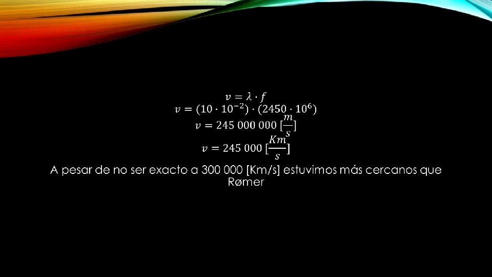 RECORDANDO… • Ole Christensen Rømer fue la primera persona en calcular la rapidez de la luz con midiendo el tiempo de desfase observando los satélites de Júpiter. • Rømer calculó aproximadamente un valor de 220 000 Km/s un valor cercano a pesar de los recursos de su época • En la actualidad constamos con más herramientas y tecnologías que Rømer, ¡que incluso se puede calcular con un pequeño experimento en el hogar!