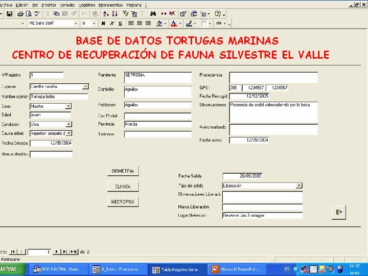 OBJETIVOS - Atención clínica en el mar - Biometría - Tipos de interacción pesquerías - Toma de muestras Hematología Bioquímica Metales pesados Genética ………… - Marcaje - Liberación