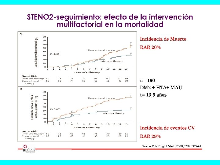 EL RIESGO CARDIOVASCULAR Y LA MORTALIDAD DE LOS PACIENTES CON DMT 2 SON INFERIORES A LOS INFARTADOS: COHORTES “REGICOR” Y “GEDAPS” Diabetes Care 2010; 33(9): 2004 -9 4410 PACIENTES DE 30 -74 A. 2260 DMT 2 SIN ENF. CORONARIA 2150 CON IAM SIN DMT 2