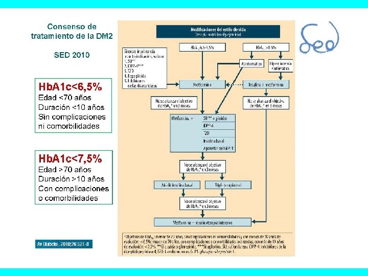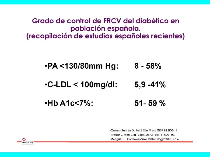 Guías clínicas NICE (UK) 6. 5%-7. 5% CDA<7% EASD <7% AACE <6. 5% ADA 6. 5%-8% SED 6. 5%-7. 5% IDF<6. 5% ALAD < 6 -7% <7%