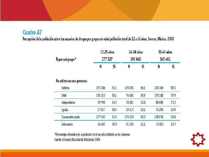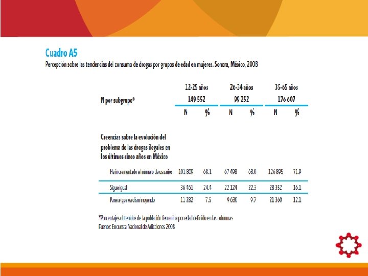 Prevalencia anual de consumo de drogas por sexo, en población de 12 a 65 años 12 a 17 años 18 a 34 años Más de 35 años 1. 8 hombres por cada mujer 5. 8 hombres por cada mujer 6 hombres por cada mujer Fuente: Encuesta Nacional de Adicciones 2008, SS, CONADIC, INPRFM, INSP.