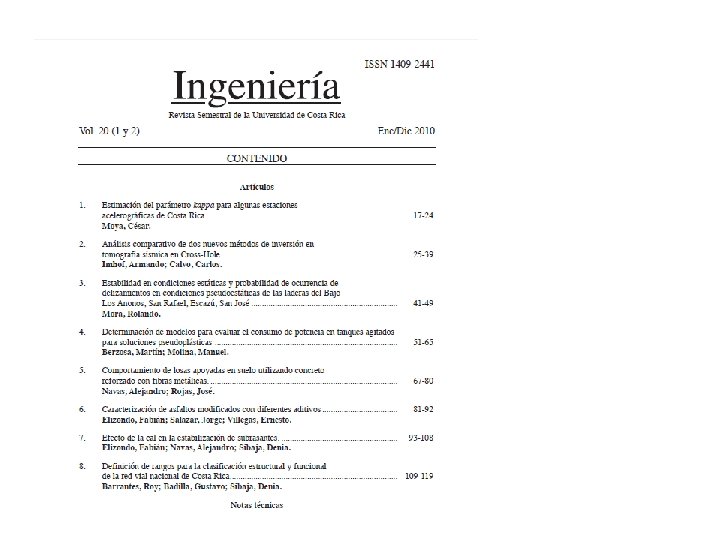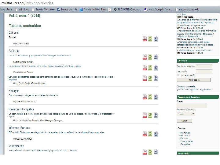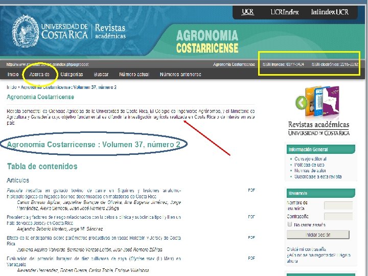 Ejemplo de una portada. ¿Qué le falta? Título Editor y consejo editorial Volumen, número y año Dirección física Precios de suscripción Sistemas de información