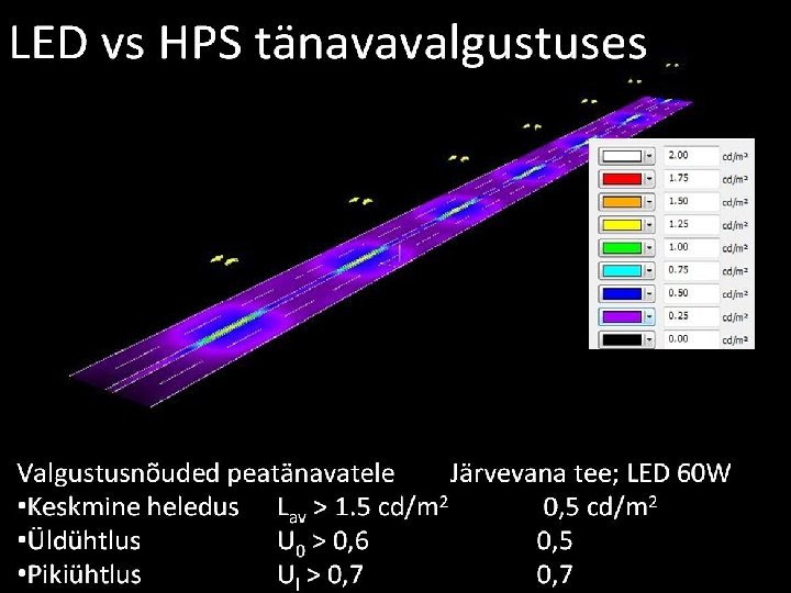 LED – PILOOTPROJEKT – järeldused • LED-ide valgusviljakus on max 80 lm/w (juurutamisel 114 lm/w, külm valge (tegelik 7892 lm/w)); Gaasilahendusega lempidel kuni 130 lm/w! • LED-idel jahutusprobleem - kuumenedes 60 C väheneb valgusviljakus 10%, alates 70 C eluiga väheneb 2 x! – 1 valgusdiood vajab jahutuseks 100 g alumiiniumi. • Eluiga kuni 50 000 h – tõestamata, ükski tootja ei anna selleks perioodiks garantiid!