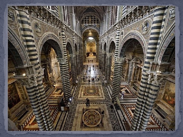 1215 ile 1263 yılları arasında inşa edilmiş Siena Katedrali, tek kubbeli, uzunlamasın a düzenlenmiş Latin haçı biçimli bir plana SİENA KATEDRALİ