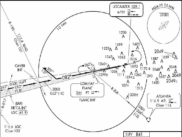 Tampa FAASTeam TERPS Terminal Instrument Procedures MSA - Minimum Sector Altitude The lowest altitude which may be used under emergency conditions which will provide a minimum clearance of 300 m (1, 000 feet) above all obstacles located in an area contained within a sector of a circle of 46 km (25 nautical miles) radius centered on a radio aid to navigation.