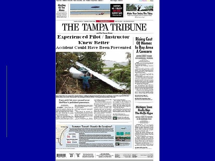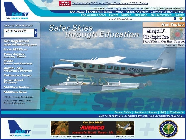 Tampa FAASTeam • January Runway Safety • February AOPA, GPS From The Ground Up • March Airspace-Navigating The DC Airspace • April Tampa Tower and Tampa Airspace • May Flight Service, Weather and More • June Flight Safety, A Viewpoint From The Pros • July Light Sport Aircraft, R&R • August Multi Vs. Single Engine Safety • September Root Cause of Accidents- Human Factors of Flying • October Runway Incursions – Runway Safety • November Simulation – An Economical Way To Stay Current • December AOPA, What Went Wrong