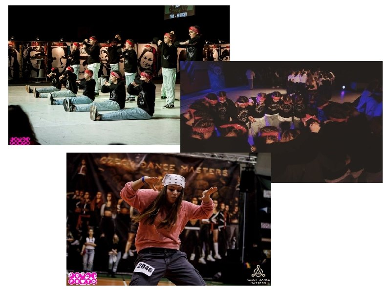 Soutěže BATTLE nebo-li „bitva“, vypadá tak, že buď 2 solo tanečníci nebo celé crew stojí naproti sobě a DJ zahraje hudbu podle toho, na jaký styl je battle zaměřený. Poté, speaker (moderátor) určí kdo začne, tanečníci postupně odtančí svůj freestyle jak nejlépe umí a nakonec porota, která bitvu sleduje, ukáže, kdo se ji více líbil FORMACE (choreografie) je na rozdíl od battlů celá nacvičená porota zde hodnotí výraz, kostýmy a sestavy, které tanečnící musí bezchybně předvést