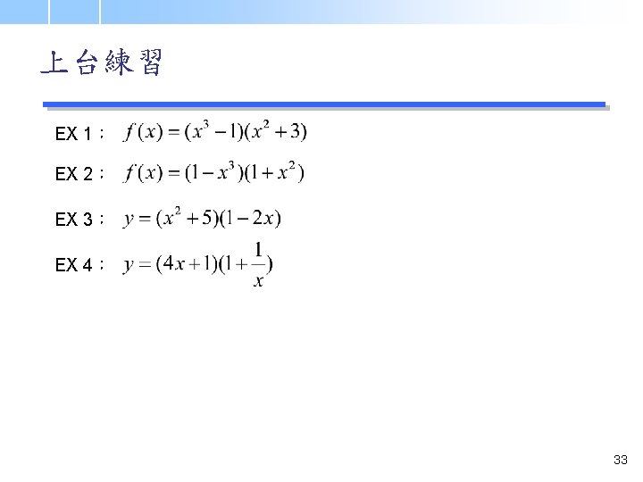 Derivative練習 1. EX: If then ( ) Sol: ( ) 12