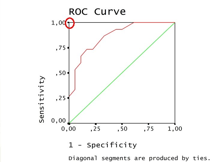 ROC Eğrisi 1, 0 Duyarlık , 9 , 8 Kesim Noktası=0. 26 , 7 DPO=0. 78 , 6 YPO=0. 31 , 5 , 4 DNO=0. 69 , 3 YNO=0. 22 , 1 1 - Seçicilik 0, 0 , 1 , 2 , 3 , 4 , 5 , 6 1 -Seçicilik , 7 , 8 , 9 1, 0