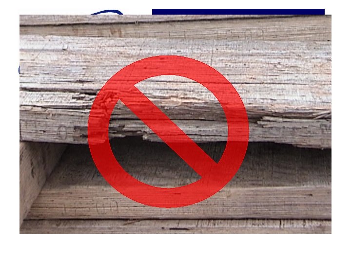 Scaffold Boards and Decking • Use only approved scaffold boards • DO NOT rip or notch scaffold boards • Ensure boards and decking are not cracked • Remove damaged boards from service
