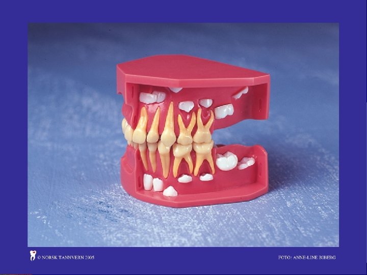 Tannløsning (Periodontitt) Blødning fra tannkjøttet ved tannpuss Tannstein/bakterier ned i tannkjøttlomma gjør at kjevebeinet smuldrer opp, tanna mister feste. Tenner blir gradvis løse Genetisk?