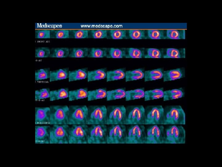 Imagerie de perfusion myocardique à l’effort (IPM) n Donne une image du cœur – L’image obtenue est déterminée par le flux sanguin – Si le débit est anormal (CAD) l’image est anormale – La zone de l’anomalie peut être identifiée Peut évaluer la taille du ventricule gauche n Utilise le thallium (TI) ou le technétium (Tc) n