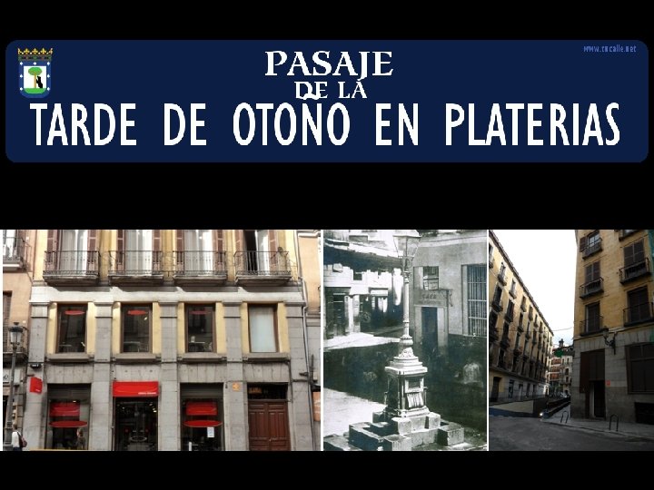 La tarde clara de otoño madrileño que en Platerías tomaba yo café, con atavío gris entrar en el salón te vi. Y, al verme tan bonita, Viniste junto a ti. Alfonso XII volvía de los toros, La tarde moría en los espejos, Julián Gayarre cantaba en el Real. soñaba el amor en los divanes Y yo en aquel café, y sin querer temblé gustosa contigo quedé, en el momento aquel, mi bien, y en sueños de ilusiones que, todo ruborosa, tu cariño acepté. inquieta te esperé. Las luces de gas iban creciendo. ¡Tarde de otoño La noche llegaba lentamente. llena de sol de Madrid! Y, al no verte venir, Café de mis sueños creyéndome de amor morir, donde el amor encontré. me fui de Platerías ¡Ay 1800, qué lejos ya estás de mí! pensando sólo en ti. Todo pasó como una luz que yo apagué. ¡ Tarde de otoño Usa ahora el ratón. llena de sol de Madrid!