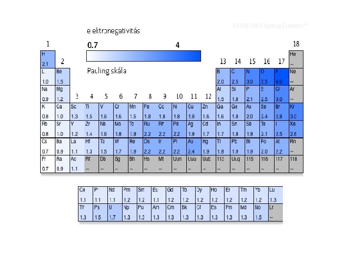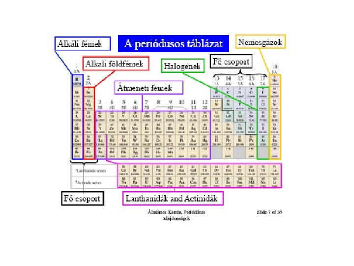 Tartalom • • A periódusos rendszer felfedezése A periódusos rendszer felépítése Az elektronegativitás fogalma Az elemek csoportosítása a periódusos rendszerben
