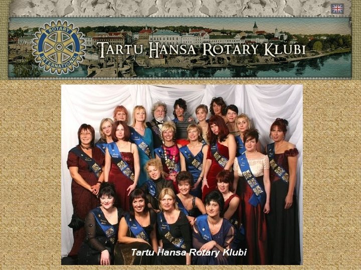 Tartu Hansa Rotary Club establishing • 2003 -2004 – Initial meeting, establishing the club • June, 29, 2004 – Awarding the membership of Rotary International • February 19, 2005 - Charter-party in the Concert Hall Vanemuine • Founding club – Tartu Rotary Club • 26 charter members • Club today has 17 Charter-members • First president – Ellen Tohvri