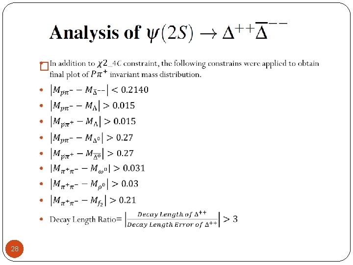 Branching Fraction Where Detection efficiency ε = 52. 8%. NObserved is total number of observed signals equal to 28. Total number of ψ events Nψ = 448 Million. The Branching fractions of B(Δ++ →Pπ+) and B(Δ−− →Pπ−) are equal to 0. 994. 43