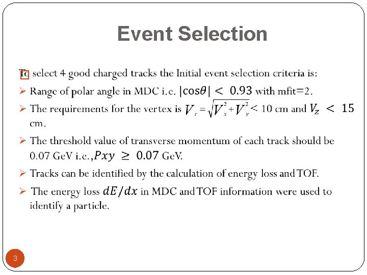 The successful event after particle identification contains one proton, one antiproton, a positive pion and a negative pion. 5