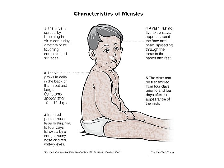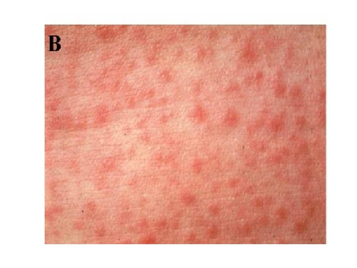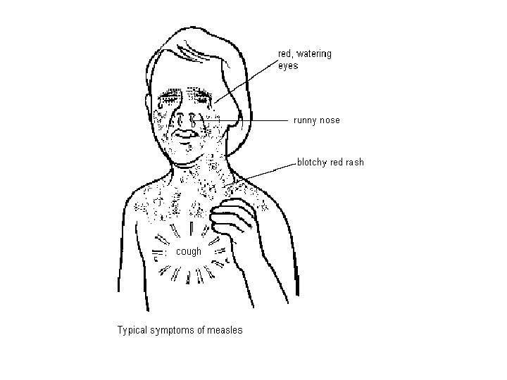 Symptoms Bloodshot eyes Cougf &fever Light sensitivity (photophobiya) Muscle pain & rash Usually appears 3 -5 days after the first signs of being sick • May last 4 -7 days • Usually starts on the head and spreads to the other areas , moving down the body • • •