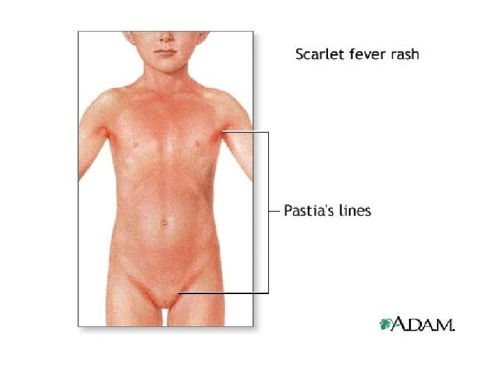 SCARLET FEVER • An acute infection by group A betahemolytic streptococci that produce an erythrogenic exotoxin.