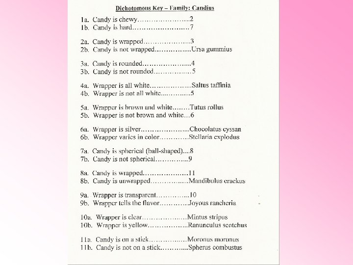 Ways to identify organisms • Dichotomous Key – Statements that describe organisms to help identify them – Always start with the first 2 statements • Cladogram – A diagram that shows the evolutionary relationships among a group of organisms.