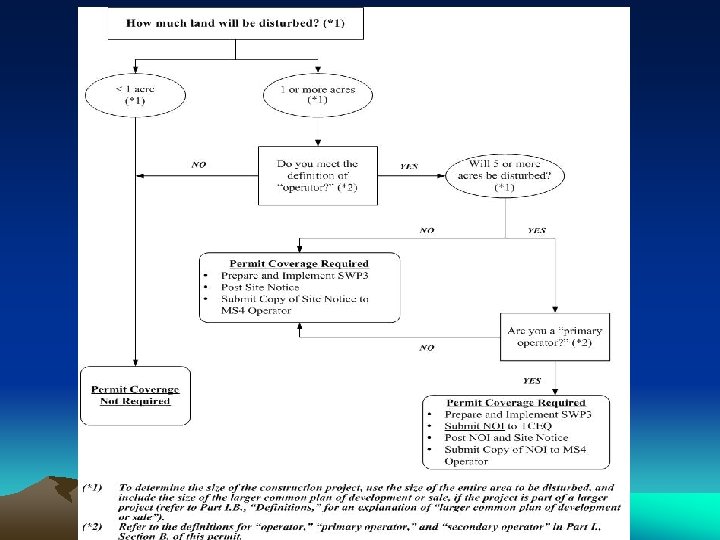 Secondary Operator • Requirements: – Not required to submit NOI – Must post a construction site notice – Provide notification to the operator(s) of the need to obtain coverage