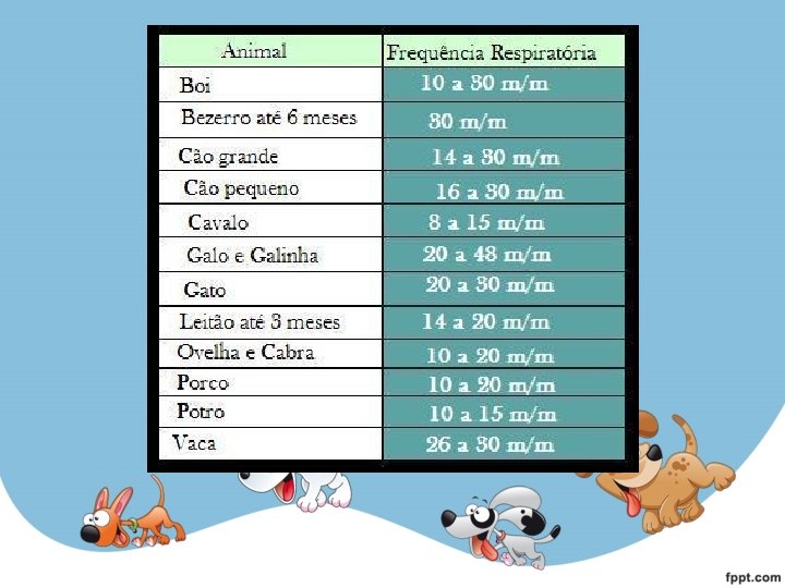 EXAME FÍSICO GERAL - Mucosas: coloração indica patologia circulatória e TPC - Frequência respiratória: 20 a 30 rpm (cães e gatos) - Frequência cardíaca: 60 a 180 bpm (cães)/ 140 a 240 bpm (gatos) -Palpação do pescoço: reflexo de tosse (≠ respiratório ou cardíaco) - Palpação do tórax (choque precordial, norte para auscultação) - Palpação abdominal (aumento de fígado, coleção de líquido) - Auscultação
