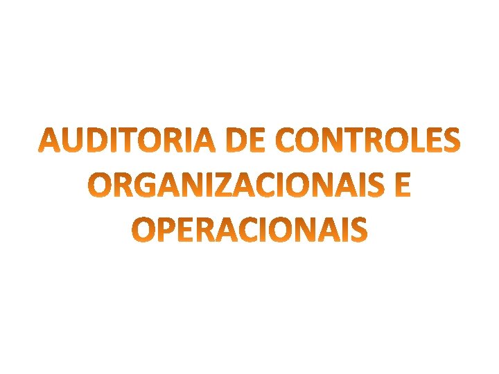 O QUE É? v“OS CONTROLES ORGANIZACIONAIS E OPERACIONAIS SÃO OS CONTROLES ADMINISTRATIVOS INSTALADOS NOS PROCESSOS DE FLUXO DAS TRANSAÇÕES, AUXILIANDO NO CUMPRIMENTO DOS OBJETIVOS DO NEGÓCIO”