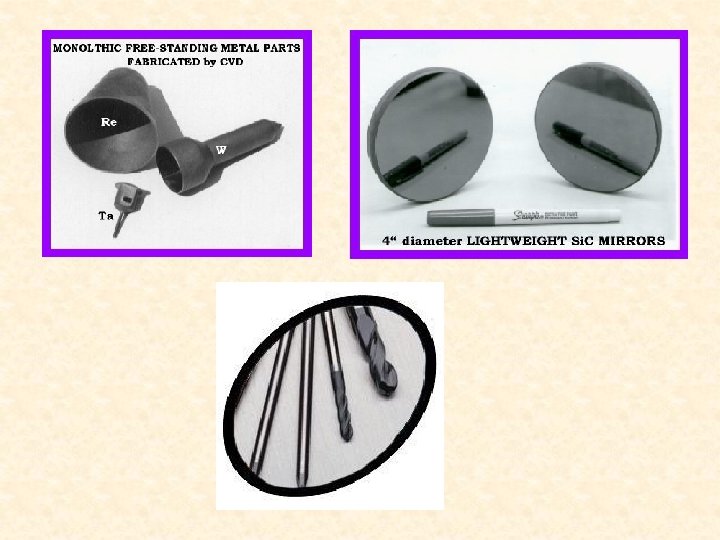 Aplicaciones generales de las técnicas Compound Semiconductor devices are used for the solar panels and the RF transmitters and receivers in communications satelites. (pictured is a Direc. TV satelite by Hughes Electronics). Microwave Plasma Deposition Planta industrial Micrografia de una capa de Diamante