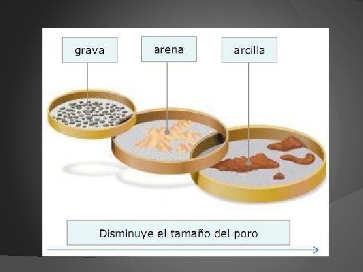 � Tamizaje: Es un método físico para separar mezclas se separan dos sólidos formados por partículas de tamaño diferente. Consiste en hacer pasar una mezcla de partículas de diferentes tamaños por un tamiz, cedazo o cualquier cosa con la que se pueda colar. Las partículas de menor tamaño pasan por los poros del tamiz o colador atravesándolo y las grandes quedan atrapadas por el mismo. Un ejemplo podría ser: si se saca tierra del suelo y se espolvorea sobre el tamiz, las partículas finas de tierra caerán y las piedras y partículas grandes de tierra quedarán retenidas en el tamiz.