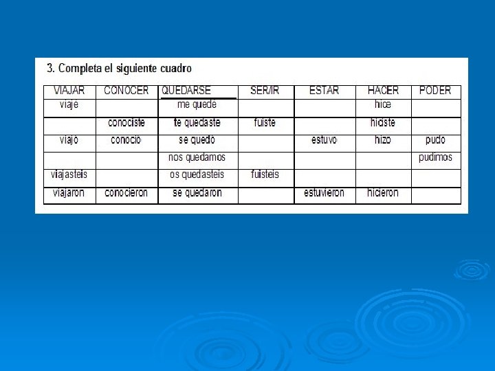 "CANCION DE LOS INDEFINIDOS IRREGULARES" (Canción popular de los comensales satisfechos del norte de España) t. Uve s. Upe p. Use p. Ude est. Uve y and. Uve Buen menú, buen menú c. Upe con la U. condu. Je dedu. Je produ. Je tradu. Je y tra. Je Buen menú, buen menú, con la J tú. h. Ice qu. Ise v. Ine y conv. Ine Buen menú, buen menú, pocos tienes tú. canción presentada por Antonio Horta, en Español, 98. Colegio Miguel de Cervantes, SP.